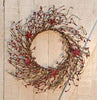 Ivory Pip & Star Pick has ivory pip berries on hand-wrapped wire branches with two rusty star accents. It is 12" high.