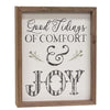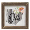 Black & Red Plaid Snowflake Mini Framed Print is a miniature sign with an unpainted wood frame and a jute rope for hanging display. Print has a weathered red and black plaid finish with slatted detailing and a white snowflake graphic in the center. Measures 4.5" high by 4.5" wide by .75" deep. Made in the USA.
