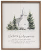 Merry Christmas Around the Tree Mini Framed Print is a miniature sign with an unpainted wood frame and a jute rope for hanging display. Print has a weathered white finish with slatted detailing and it reads, "Merry Christmas" in red text with a Christmas tree graphic in the center. Measures 4.5" high by 4.5" wide by .75" deep. Made in the USA.