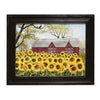 No. 8 Bee Sting Framed Print features the image of a vintage blue chair with chipped paint next to a large crock. The chair has a doily draped over the back with a candle and a basket sitting on the chair. The print comes with a black, lightly distressed wooden frame. Measures 16" high by 12" wide and is made in the USA.