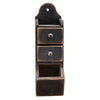 Beadboard Shelf w/Drawer is made of black painted, distressed wood and features a shelf with pull drawer for storage. It is made in the USA and measures 17" high by 19½" wide.