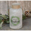 Wide Farmhouse Christmas Jar is a beautiful frosted glass jar that is a great accent to add to your mantle or tabletop for a touch of holiday charm.