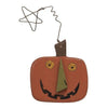 The Pumpkin Ornaments are a set of three decorative wooden cutout ornaments in the shape of pumpkin figurines. One pumpkin is white with a black star graphic (6” x 3.5”), another is orange with a jack-o-lantern face (4.25” x 4”), and the third is black and white plaid with a white star graphic (5” x 3.75”). Each ornament includes a curled wire hanger to use for display on a tree, hook, nail, or knob, bringing a rustic touch to the home during the Fall and Halloween season.