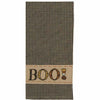 Boo Shiplap Box Sign features a whitewashed background and dark wood frame. Sign has shiplap detailing and reads, boo in large black text. Sign has a sawtooth hanger for use as a wall accent, but it has a flat bottom for use on a floating shelf, mantel, or console table. Measures 5 squared by 1 deep.