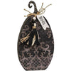 The Boo Y’all Ghost Hanger is a decorative wooden cutout ornament with a ghost silhouette and a white painted finish. The ghost reads “Boo Y’all” in black script and features miniature black wooden charms in the shape of a moon and stars. The ornament has a wire hanger to use for display, bringing a spooky and festive touch to a wall, door, or tree during Halloween. Measures 11” high by 5.5” wide by .25” deep.