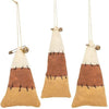 The painted, distressed wood Candy Corn Ornament has glitter accents and a thin wire hanger. It is 3¾ high by 2¾ wide.