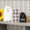 The Halloween Witch Sign is a decorative wooden sign perfect for the Halloween season. The sign is finished in black, reads “Halloween” in a vintage white block font, and displays a circular moon cutout with a pressed metal silhouette of a witch on a broom. The back of the sign comes with two rectangular hook hangers, perfect for displaying on any wall in the home for a festive Halloween touch. Measures 5.5 high by 23.75 wide by .5 deep.