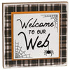 The Wicked Damask Sign is a decorative wooden hanging sign with a black background and a fanciful damask pattern. The sign displays a white plaque reading “Wicked” in black script, made complete with a black and white fabric tassel attached to the bottom of the piece. The sign includes a black metal hanger to use for displaying on a wall or door during Halloween. Measures 11.5 high by 8.5 wide by .25 deep.