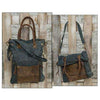 Dakota Shoulder Bag is a large shoulder bag made from up-cycled materials. Bag features genuine leather trims and antique metal hardware. Includes a large front pocket, a zippered closure, and three interior pockets. Measures 20" wide by 13½" high and 4" deep with a 7" handle drop.