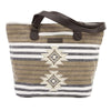 Luxe travel bags serve as inspiration for the Tabitha Shoulder Tote. Woven jacquard in tomato red, tangerine, plum, citron, and creme come together for a bold and fun look. Tabitha is all cotton for a soft feel yet durable for the long haul. Features coffee brown leather straps with antique brass hardware.