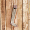 Simplicity and traditional style add an elegant accent to your Christmas decor. The Grace Grain Sack Stripe Ruffle Stocking measures 12x20 inches and features soft tones of nickel gray, creme and deep tan. The stocking's base is crafted with a wide grain sack style stripe in gray and creme. A contrasting cuff in deep tan fabric features a ruffled edge and light wooden button for a charming handmade look. Coordinates with the Grace Collection by VHC for vintage farmhouse style for the whole home.