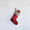 Display an elegant touch this Christmas morning with the Memories Creme Stocking 11x20. Showcasing diagonal lines of ivory and gold ribbon on the embellished cuff. Base of stocking is in soft vanilla velvet.