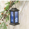 Musical Spinning Holiday Scene Water Globe, 3 Asstd. is a plastic snow globe in a lantern design. It requires 3 AA batteries to operate (batteries not included) and plays Christmas tunes while casting a warm, golden glow. It has a built-in timer that can be switched on and runs for 6 hours and then off for 18 hours. It is red and has a metal handle attached at the top and features a snowman figurine, Santa figurine, or vintage red truck figurine in its center. Measures 7" high and 4" wide.