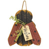 Beadboard Towel Rack has a 6" high by 14½" wide shelf and is made of distressed black wood with beadboard details. It features two metal hooks on the back for hanging. It is made in the USA and measures 12" high by 16" wide and is 4¾" deep.