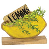 The Cheers Wign Sign w/ Glasses is a wooden sign layered with painted, distressed wooden cut-outs of a wine bottle and glasses. The wine bottle is printed with the word "Cheers." The sign measures 14" high by 12" wide.