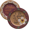 The Gathering Place Distressed Metal Wall Sign is a galvanized metal sign with a plate-like shape. Sign is made of galvanized metal and has a flat back with a curved rim. Sign has a distressed, white painted finish with rusty trims, and it features the phrase, "The Gathering Place," in laser cut out lettering. Hangs via a sawtooth hanger. The negative space of the lettering on this sign will bring any wall to life - simply change the room it hangs in if you want to change the color of the font! Measures 14.5" in diameter by 1.5" deep.