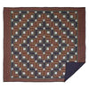 Lincoln King Quilt is an antique white quilt that is accented with a quilted star pattern. The 8-point stars are made up of blue and red plaid fabrics. The back of the quilt is a faded denim blue and white ticking striped pattern. Front is 95% cotton and 5% linen. Back is 100% cotton. Measures 97" wide by 110" high.
