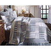 Parker King Quilt is made of 100% cotton and features a pattern of burgundy, navy, and tan plaid strips. The quilt is accented throughout with primitive, 4-point patch stars and has a burgundy plaid border. The back of the quilt is a navy and tan plaid fabric. Measures 97" high by 110" wide.