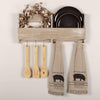 The Black Star 18x18 Button Loop Kitchen Towel features a checked plaid fabric in raven black and deep tan with applique stars. The unique design features a button and loop to easily hang the premium cotton towel for easy access. Coordinates with other items from the Black Star Collection by VHC for a wide range of kitchen accessories and more with primitive country style.