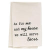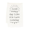 The Kiss My Biscuits Dish Towel is a white cotton dish towel with a fabric loop in one corner for easy hanging on hooks and knobs. The towel reads “Kiss My Biscuits” in black letters and measures 28” x 28”.