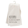 Dish Towel is a 100% cotton towel that features a clean white color and black lettering that reads, my kids inspire me to drink. Towel is machine-washable and it looks great hung on a hook, towel bar, or the handle of an oven. Measures 28 high by 28 wide by .25 deep.