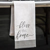 We Go Together Like Coffee and Donuts Dish Towel is a light gray, 100% cotton, waffle weave towel with black and white striping details along the bottom. Towel features the design of a to-go coffee cup and a trio of donuts underneath the phrase, We Go Together Like Coffee + Donuts. Measures 28 high by 20 wide and includes a fabric hanger on the reverse side.