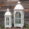 LED Flameless Timer Lantern turns on and off manually or use the timer option (5 hours on, 19 hours off). 3 AAA batteries included. Indoor/Outdoor. 14" tall x 6" wide. Lantern walls are plexiglass.