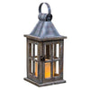 The Christmas Lantern is a black metal lantern with faux holiday pvc greenery and red berries attached to the top. A red bow with a pinecone provide the finishing touches. It has a battery operated pillar in the bottom that requires 3 AAA batteries, which are included. It measures 15½" tall by 5½" square.