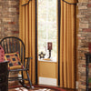Black and tan ticking in form of country elegance can be found in the Carrington Lined Ticking Single Curtain Panel measuring 56" x 84" from Park Designs. For country primitive decor with bold black stars in a striking single panel. Shown with the matching valance, sold separately. Includes one tie back. 1 1/2" header and 2" rod pocket. Dry clean recommended. The Carrington collection includes beautiful placemats, table runners, and more for the dining room.
