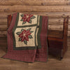 • Plaid and solid triangles reminiscent of Christmas trees adorn the front of this throw, accompanied by plaid border accent