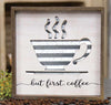 Simply Farmhouse Sign features the lightly faded image of a cow on a slatted, white shiplap background. Image is displayed in a natural wooden frame that hangs on a sawtooth hanger. Measures 20" square by ¾" deep.