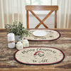 Add a retro pop to your Christmas table decor. The Jolly Ole Santa Placemat includes one oval placemat measuring 10x15 inches. A unique blend of jute and recycled cotton are braided to form a deep creme base with a red and black striped edging. The central creme weave is printed with a vintage inspired Santa print surrounded by the words, Merry Christmas to All. Spot clean as needed. Coordinates with the Jolly Ole Santa Collection by VHC for more festive classic Christmas decor.