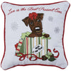 This enchanting pillow is ideal for those who desire to add seasonal elements without redecorating the entire room. It features an embroidered dog with radiant red trimming. This charming pillow can blend in a variety of environments with any style and will remain a holiday favorite for years to come.