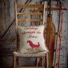 Hi Ho the Mistletoe! The 14x22 Mistletoe Pillow features a leafy green mistletoe with three real jingle bells. "MISTLETOE" is appliqued in red and green plaid on jute and framed with two stenciled red lines for a clean-cut look.
