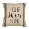 Scratch Feed Pillow is made of natural, aged fabric, and resembles an old-style feed bag. It has red and blue accents on the front and back and measures 12" square.