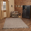 Sawyer Mill Cow Placemats sell as a set of six jute fabric mats. Mats feature bands of black, taupe, silver and natural colors, and each displays a distressed, black stencil image of a grazing cow. Measures 12" high by 18" wide.