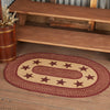 Burgundy Red Primitive Jute Braided Rug Half Circle Stencil Stars 16.5"x33" with Rug Pad VHC Brands