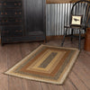 Bring a primitive touch to any room with the Kettle Grove Jute Rug Oval Stencil Star 20x30. Featuring stenciled black primitive stars in the center and alternating braids in black, warm creme and soft caramel brown.