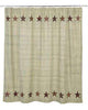 Fancy Poultry Shower Curtain is made of greige chambray material. It features a rooster and hen design with the phrase, "Quality Feed For Fancy Poultry." Measures 72" square. Please note: item is made of fabric material and is intended for use with a liner.