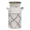 The Paper Wildflower Spray is a decorative floral spray featuring a flexible green-wrapped stem. The spray displays small circular leaves and layered fabric pink and white flowers. Display this spray within a summer floral arrangement or on its own in a vase, bottle, or jar. Measures 30 long.
