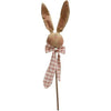 The Spring Floral Bunny Ornament is a decorative plush bunny figurine made of cream woolen fabric. The bunny features a stitched face, pink ribbon, and floral crown detailing, and makes a sweet, primitive addition to the home during Spring and Easter. The ornament includes a string hanger to use for display on a tree, knob, or hook. Measures 4.5” high by 3.25” wide by 3” deep.