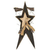 The Americana Star Trio is a perfect rustic touch for a basket, bowl, tray, or place among florals for a unique look. Navy, ivory, and red stuffed fabric folkart stars, tea-dyed and dusted with cinnamon for a primitive finish and subtle fragrance, and accented with rusty jingle bells and safety pins. Three piece set, each star is approximately 7" H x 6" W