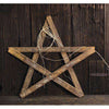 Dimensional Star Hanger consists of a black wooden star with a smaller ivory star attached to its front. The use of two stars gives the item a multi-dimensional look. Item is accented with fabric bows and rusty spirals. Measures 24" high by 6" wide.