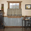 Bring classic Americana to your room with the Vincent Tier Set. Featuring navy plaid applique stars along the scalloped border on a striated khaki green cotton base fabric. Lined with white cotton.