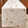 This beautiful celestial table runner provides a modern chic twist to an everyday table setting. This stellar table runner will add an out-of-this-world aesthetic appeal with its white constellation print and golden star pattern to your casual dining room area. Made of a 100% cotton material to protect your tabletop surfaces from daily wear and tear that can be used on an entryway, dining, or kitchen table for a touch of outer space charm.