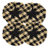 Burgundy & Tan Check Star Applique Square Coasters are a set of four fabric coasters with a charming burgundy and tan check finish and square shape. Coasters come wrapped together with a jute string and bow and each is accented by a five-point, red applique star in the center. Coasters are a simple way to prevent water rings, spills and drips and they measure 4.5" in diameter.