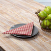 Black Star Woven Placemats sell as a set of six. Each placemat is made of black and tan gingham fabric and features a border of black stars. Measures 12" high by 18" wide.