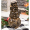 Lath Vertical Crate Snowman is a decorative tabletop snowman head made from distressed, painted wood slats. Top hat is accented with strands of raffia. Measures 15½" high by 5½" square.