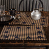 The Whimsy Pumpkin Tray features 3 cartoon-styled pumpkins on a mustard and tan striped backrground, each with a different pattern: swirls, stars, and square spirals. Lightly distressed oval pressed wood decorative tray, 5-1/2" high and 15" long.