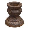 The Egg Cup Holder is a decorative pedestal tealight candle holder made of distressed black metal with a textured finish and light speckle detailing for an antiquated look. The holder has a round base and scooped tealight candle cup at the top. Display sitting atop a riser, tray, shelf, or table for a charming and primitive touch to the home year-round. Measures 5” high.